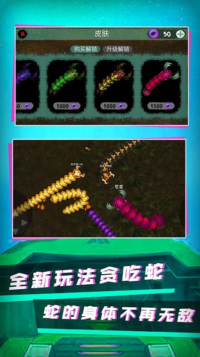 3.卡通的游戏背景动画,非常的有趣,还有很多不同的蛇皮肤,玩家们可以通过不断地游戏来解锁。