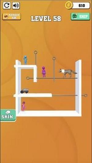 在这款游戏中它里面有着各种难度不同的关卡,玩家可以在里面去完成各种不同难度的挑战,并且每一关中它的针的顺序都是不相同的,场景也不相同,陷阱也不相同,所以对于玩家来说每一关都具有挑战性,如果你想解救出被困在关卡中的女孩,那么你先要把陷阱机关破坏掉完了再去抽动真的顺序,顺利的将女孩解救出来。