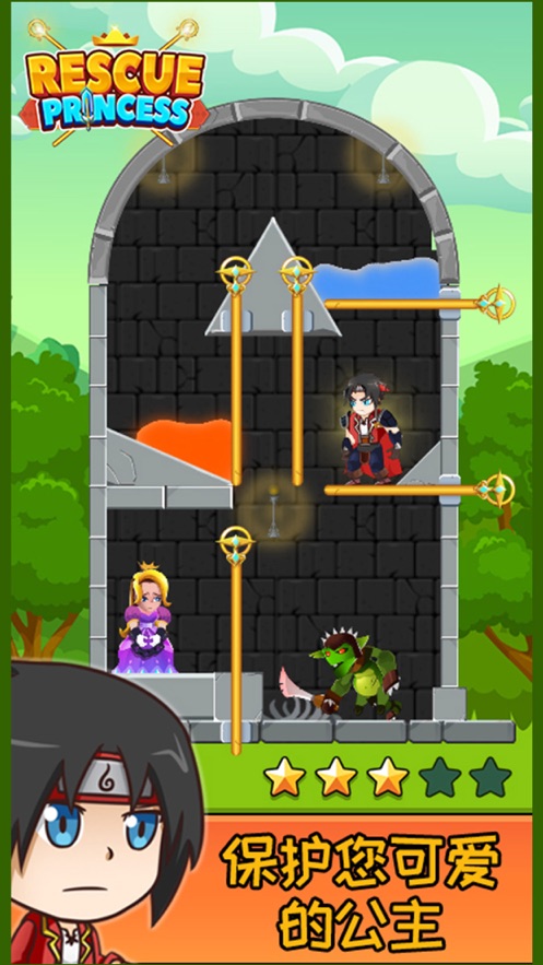 救救小公主采用了非常经典好玩的抽针解谜游戏玩法,玩家在游戏中将化身成为英雄前往危险重重的迷宫之中拯救公主,游戏中的关卡非常的丰富,玩家需要按照一定的顺序抽针,确保可以安全的将公主救出来,非常考验玩家的思维逻辑哦。