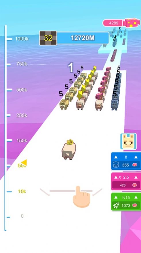 3.叠的方块猪越高,你的移动速度就会越慢,所以要小心别人可以超越你的。