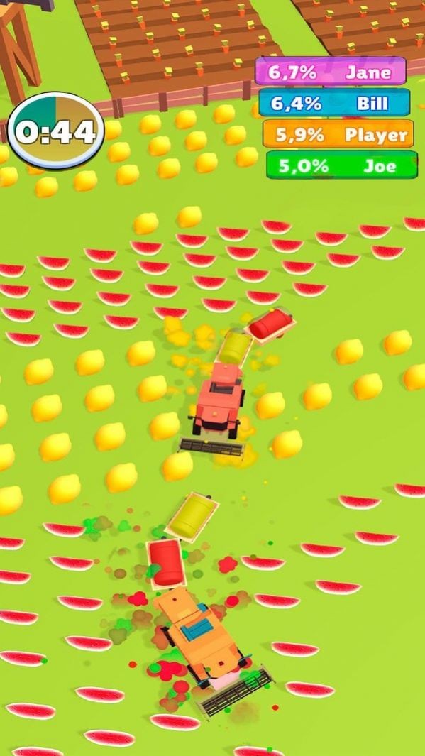 水果收割者是一个非常有趣的休闲小游戏,玩家将使着收割机来收割各种水果,开启属于自己的收割挑战,在这里将面对各种考验,不仅有时间设定,还会和其他玩家一起比较,看谁收割的水果更多,玩法简单,用户只需要通过手指点击,操控着收割机就可以来完成挑战。