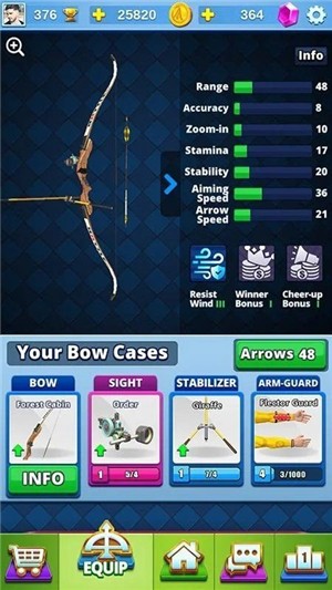 玩家可以自由的选择适合自己的弓箭