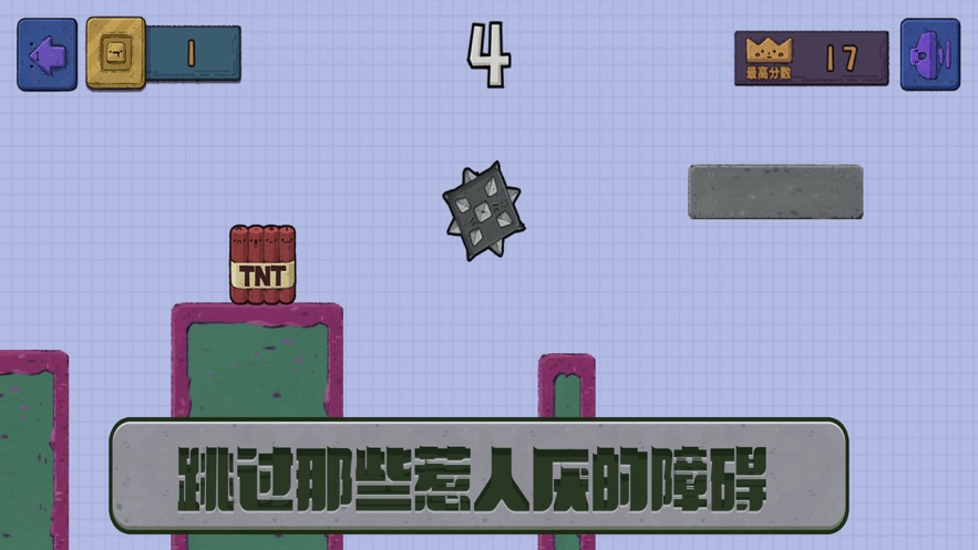 在这款游戏中可以提现到跳跃带给大家的快乐,在一次一次越过眼前的困难之后的胜利感,是很多游戏无法做到的,还可以与几个朋友坐在一次比赛谁闯关的记录是最多的,谁的分数最高,强大的闯关系统让游戏变得有趣,不要在困难面前低头,只要找到正确的方法,必定可以顺利通过。