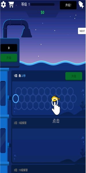 在离线时赚取数百万和数十亿,点击以提高鱼的生产力。