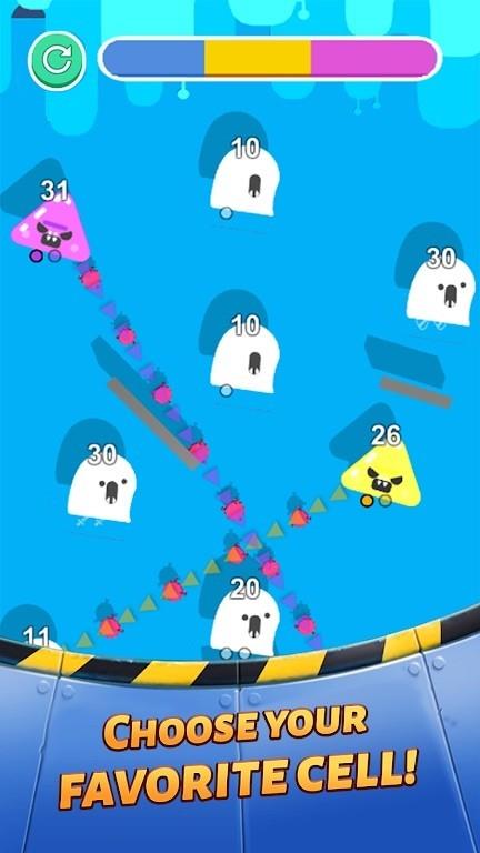 1.游戏采用高清的画面,亮丽的色彩搭配,还有可爱的细胞造型,非常好玩。