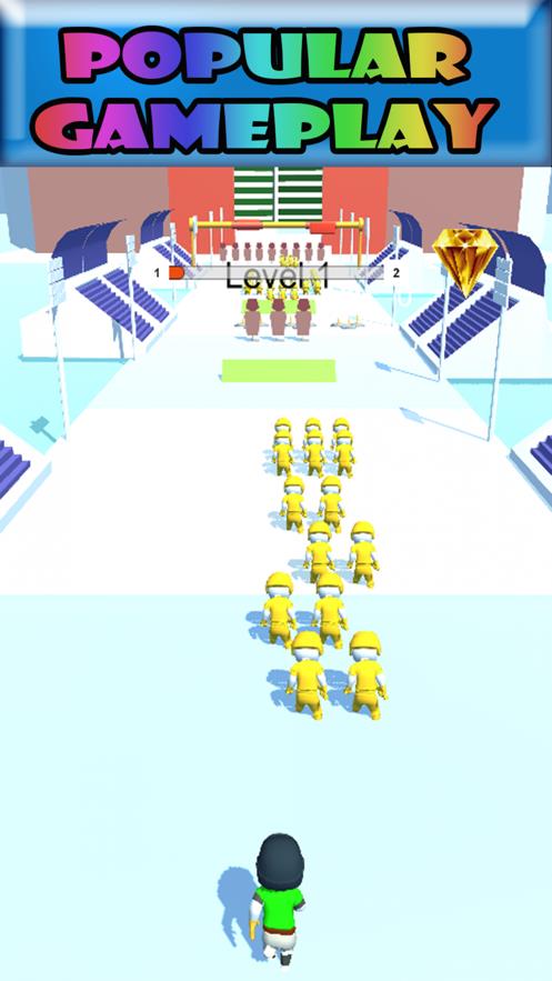 壮大人群是一款非常经典的休闲益智类游戏,画面设计得非常的简约,方便了玩家在第一视觉更好的去操控游戏,玩家在游戏里面,需要不断的去进行向前奔跑,同时还要收集更多的人群,这样才能更好的去进行团体对战,同时还需要去提升团队的作战能力,才能更好的消灭敌人。