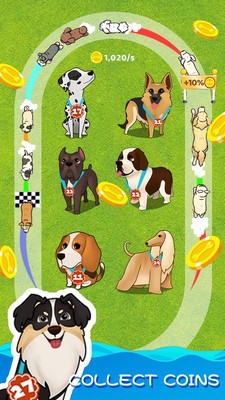 聪明的狗这是一款休闲益智类的游戏,在这款游戏中会有很多非常可爱的狗狗,你需要去收集这些狗狗,然后进行合成获得更高级的狗狗,然后用这些狗狗来帮你参加活动,然后让他们为你赚取更多的钱,你就可以购买更多的狗狗。
