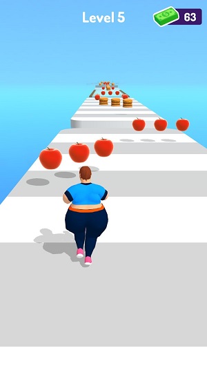 减肥靠苹果这是一款休闲类的跑酷小游戏的说,你需要多做一个胖子在赛道上面进行保护比赛,在这个游戏中你需要注意不要让你的人物变成一个胖子,在跑酷的过程中你会遇到很多的食物道具,你要小心避免那些会让你变胖的食物。