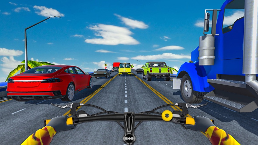 疯狂的交通自行车骑手游戏要玩家自己控制整个人物角色骑着自行车,在各种场景里面行驶,因为它里面的场景是很多障碍物的,这些障碍物如果你撞到的话,就可能会直接出局,所以玩家一定要躲避那些障碍物,而且有的障碍物还会移动。
