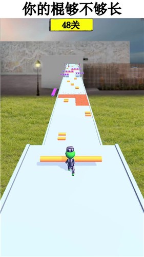 玩个棍儿这是一款闯关类的跑酷小游戏,在游戏的过程中,你需要不断的去收集木棍,然后可以让自己保持平衡,才可以顺利的通过每一个关卡,赛道上会有一些障碍会使你的木棍变短,所以这就可能让你的挑战失败,你要让自己可以获得更多的木棍。