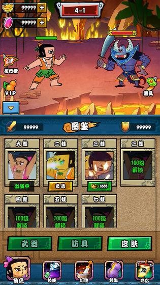 1,不断升级等级,解锁更多的葫芦兄弟,解锁更多的技能和战斗方式;