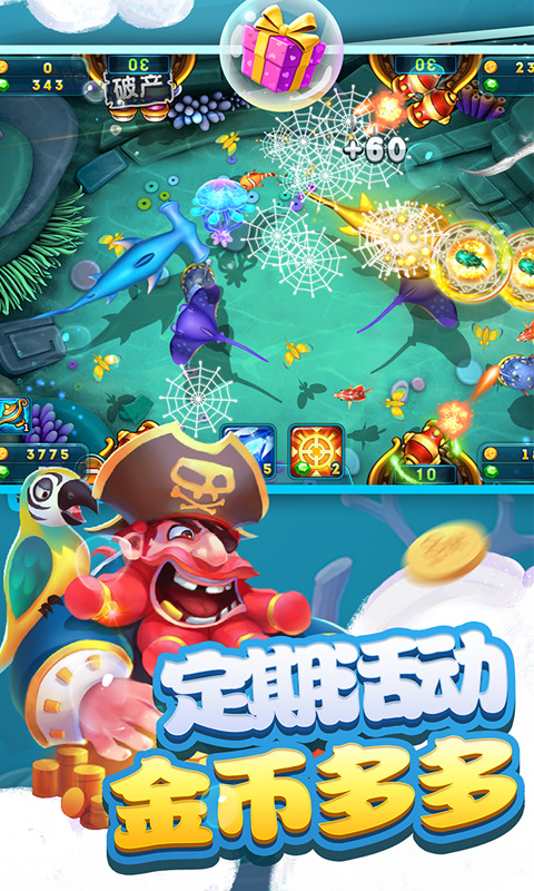 万人同时在线,四人同屏捕鱼,一起挑战大boss!黄金龙王、远古冰龙、神兽朱雀,让你做个真正的捕鱼达人!