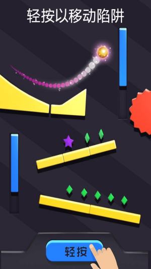这款游戏操作起来非常简单,不同年龄的玩家都可以轻松的操控,通过轻轻按住控制键控制弹珠向前不断移动,避免各种障碍,收集更多的奖励。精美的游戏画面和丰富多彩的游戏内容,带给玩家不一样的游戏感受,趣味无穷且充满刺激的挑战。