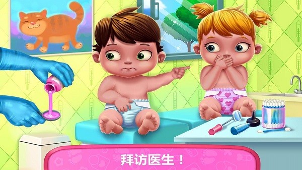 2.游戏的操作方法是比较简单的,还可以在宝宝生病的时候给他们吃药。
