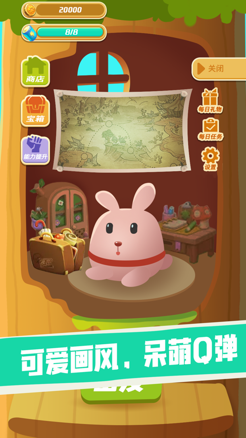 2.随着音乐的节拍,和小兔子享受跳跃的快乐,获得更高的分数。
