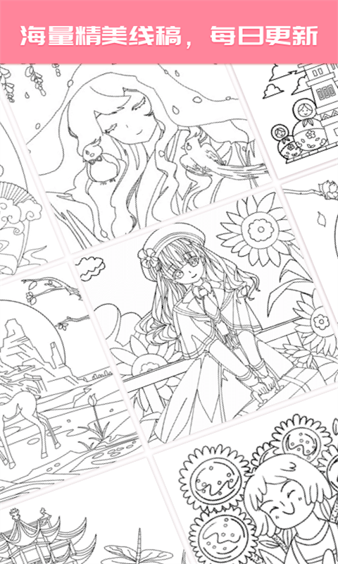 3.每天都会更新超多的素材,等待玩家去进行填色,还可以将完成的画作分享出去。