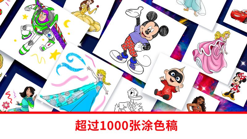 这款游戏玩起来十分有意思,里面给玩家提供了非常多的图片,这些人物都是我们所熟悉的迪士尼人物,有米奇,唐老鸭等经典人物,每个人物形象都不一样,给他们涂上漂亮的颜色,整个动漫人物看起来惟妙惟肖,就像真的进入到动漫世界一样,从来没有想象会有这样一天,自己亲手给动漫人物塑造形象。