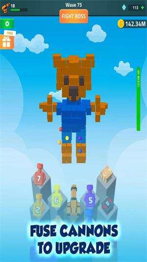 在这款游戏中,玩家可以自由决定大炮的射击方向,尽量用最少的炮弹击毁前方的方块,竖版的游戏模式让玩家可以单手进行操控,非常方便。
