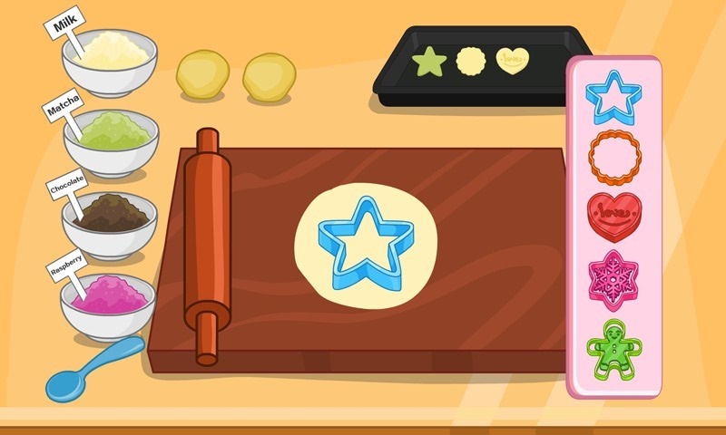 3.根据游戏提示来选择食品和相应的厨具,快速的制作出自己喜欢的甜品。