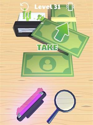 2、通过不断的挑战还能够去解锁出各种强大的工具,能够让自己更加简单轻松的去完成各种挑战任务,在进行挑战的时候还可以自由的去开启振动模式,感受更加有磁性的指尖操作体验,还能够享受到更多钞票的魅力。