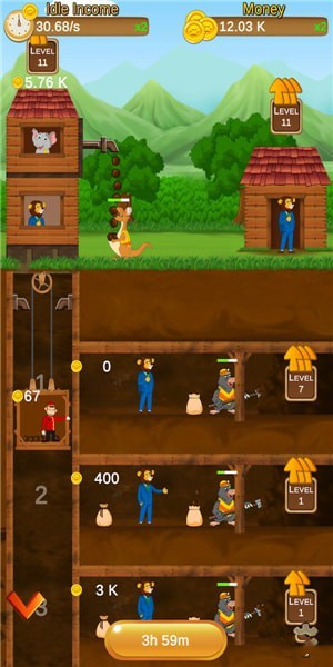 动物矿工大亨游戏的玩法是非常的有趣的,操作起来也是非常的简单,只需要简单的点点点就可以玩下去,而且游戏也可以离线获得收益,玩家只是需要简单的点一点就可以获得收益扩大经营的规模。