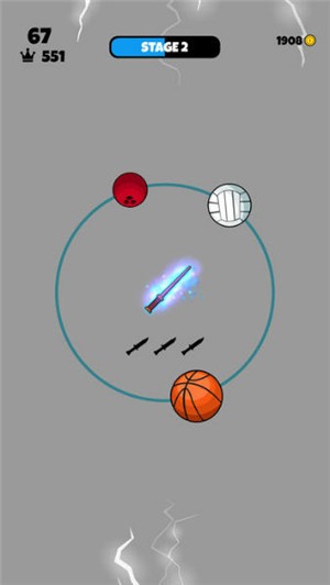 在这款游戏中设定了众多的游戏关卡,在每个关卡当中需要玩家去完成的任务都不一样,玩家可以去利用不同的飞刀,并且能够去击败更多的篮球,随着游戏的进展,游戏的难度也会跟着增加,所以玩家一定要去选择属性更高的飞刀,让自己顺利完成挑战。