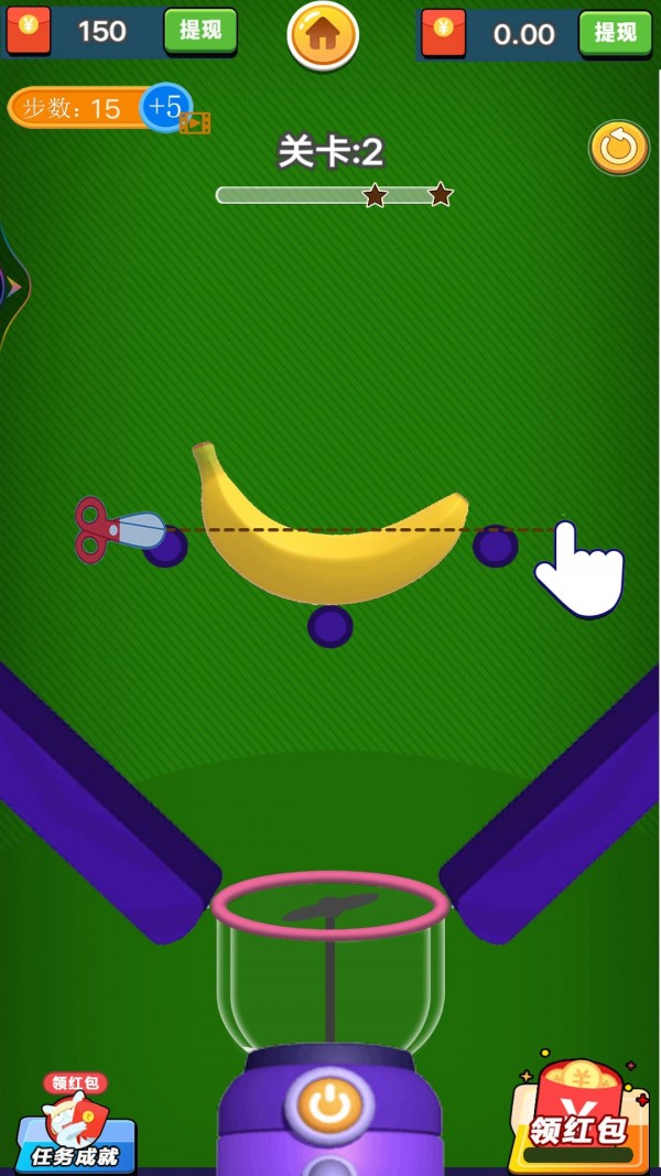 2.玩家需要在游戏关卡中将不同的水果切开,放入榨汁机做成果汁。