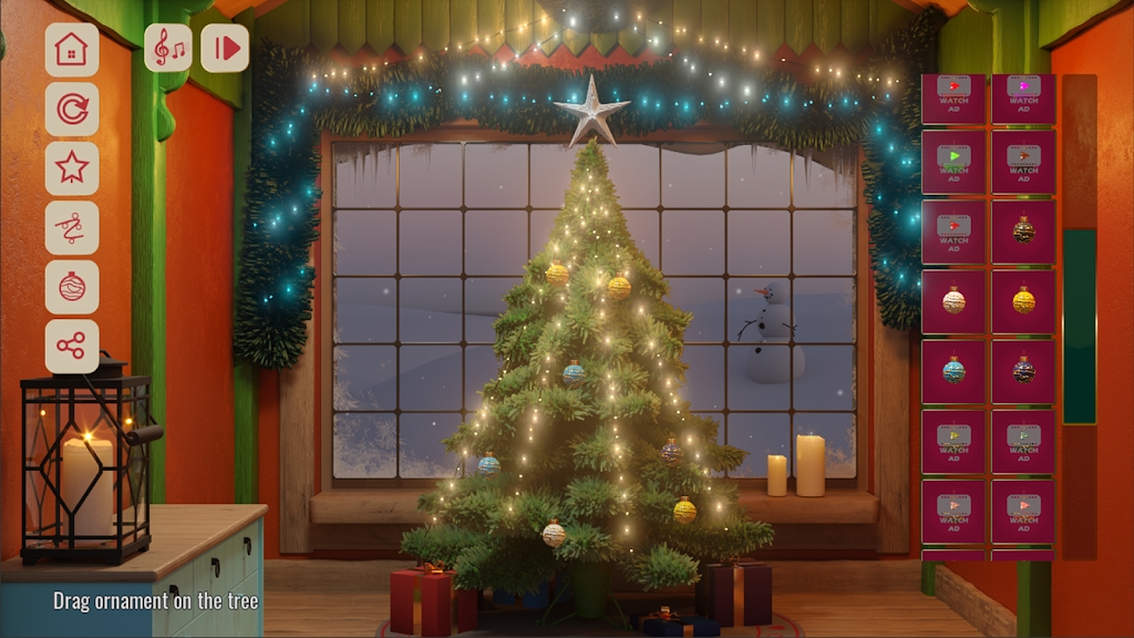 装饰一棵圣诞树是一款随意度非常高的休闲益智类小游戏,这款游戏中为你准备了一颗非常好看的圣诞树,你需要按照自己的想法在这里不断的装扮圣诞树,让它变得更加的生动,游戏里面有很多不同的装饰品,可以按照自己的喜好来选择装饰。