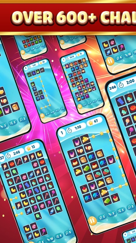 连接瓷砖匹配这款游戏里的十分卡通的画风设计,是一款非常简单有趣的休闲闯关游戏,这里是由非常多美味食物组成的各种各样的元素,有着非常有趣的玩法内容,每次在闯关的过程中会有非常多的障碍物,一定要及时的躲避开来。