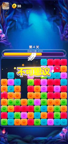 2.每一个关卡当中都有对应的目标分数,当方块儿连接到达分数的时候就代表闯关成功。