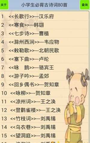 小学生必背古诗词80首它是一款以寓教于乐为教学方式的益智游戏,这里包含了许多的古诗词内容,可以通过观看动画和听取录音了解更多的古诗词,同时也为小朋友准备了一些填词游戏,根据古诗词的提示将正确的答案填写出来,让孩子快速的掌握背诵和默写的方法。