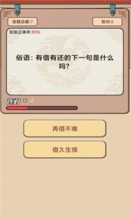 答题一点通是一款好玩的休闲益智类型的游戏,海量的词汇,简洁精美的画面,大量的关卡任务等待玩家去挑战,操作玩法非常的简单,只需要将正确的答案填充到相应的地方,让空缺的成语变成完整的词语就行,还会有丰富的奖励获得。