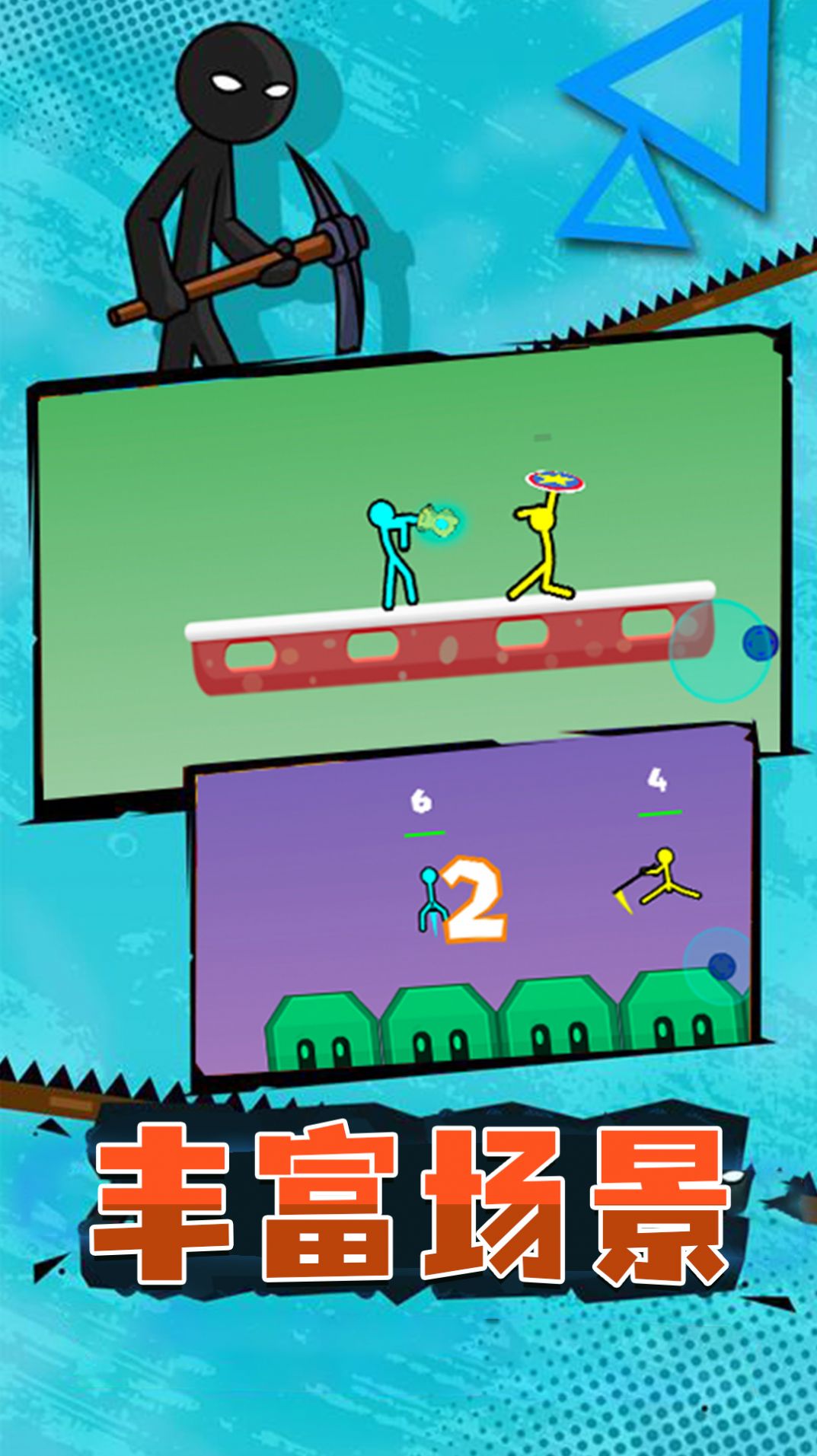 1.游戏中玩家控制火柴人,在不同的关卡中完成各种战斗。