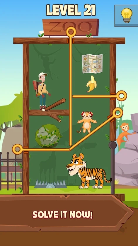 非常考验玩家的大脑的思考能力,拥有非常多有趣的关卡,每一个关卡都有很多挑战等待着玩家,需要玩家按照正确的顺序拉针之后,才能够获得游戏的胜利,游戏中有各种有意思的装扮,玩家可以在商店中进行购买,这些装扮可以让角色看起来更加的有趣。