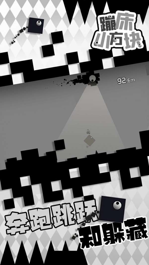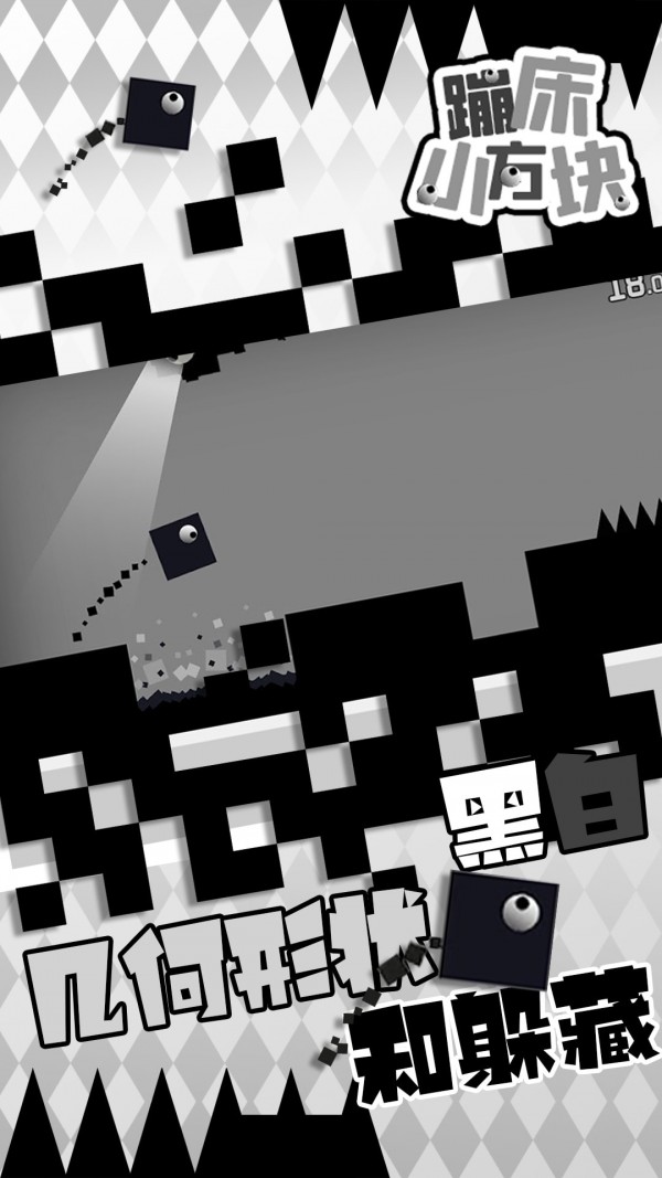 1、每一个玩家都会身处在一个黑白几何形状的游戏世界中,自由的进行各种跳跃奔跑。