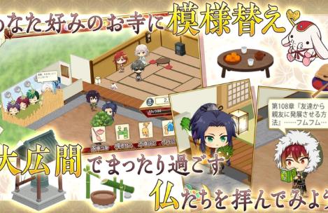 玩家也可以更换庭院的道具,看到佛祖们在寺庙里做家务和休息的场景。