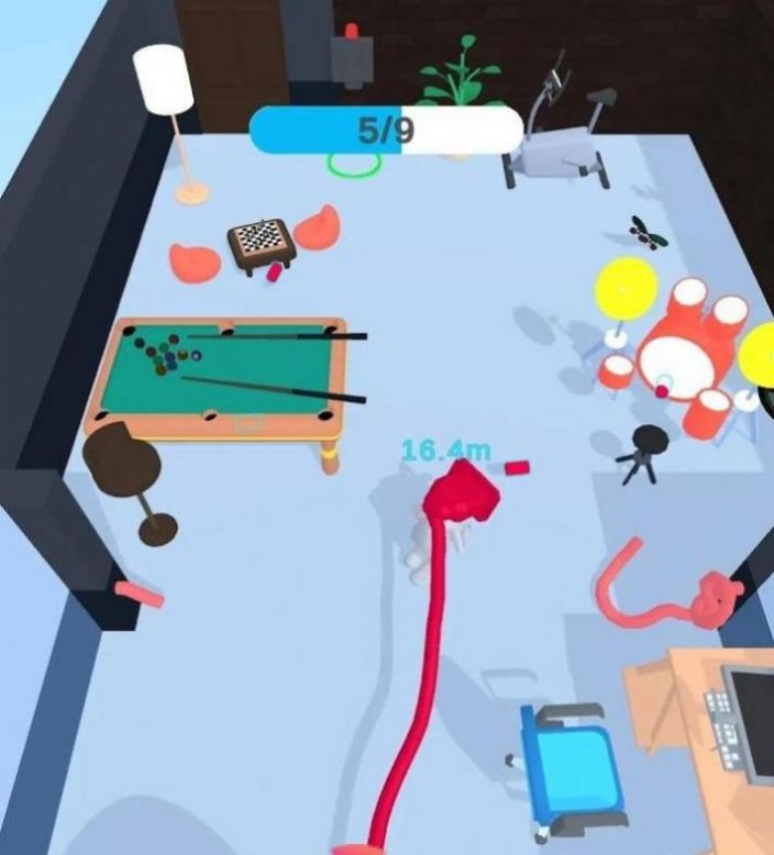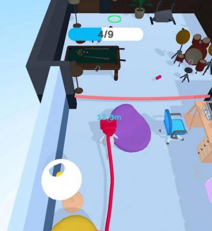 2.关卡的家具都有可能阻碍你的前进,所以你要观察线的长度来有效的避开家具等。