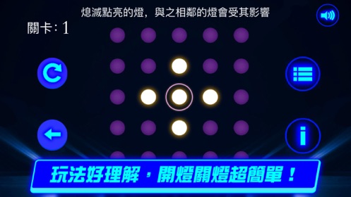 《火荧光秀》是一款解密风格的休闲益智类手机游戏。游戏围绕着一个电灯工厂展开,工厂中的灯泡们陷入了故障。玩家需要摸索出灯泡们亮灭的规律,寻找出解决故障的方法,并最终成功地关闭所有的灯泡们。在不断的摸索中,逐渐摸索出属于自己的小技巧吧。