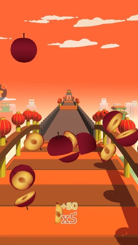 2.屏幕上会不断出现各种各样的水果,玩家需要精准的控制手指进行切除。