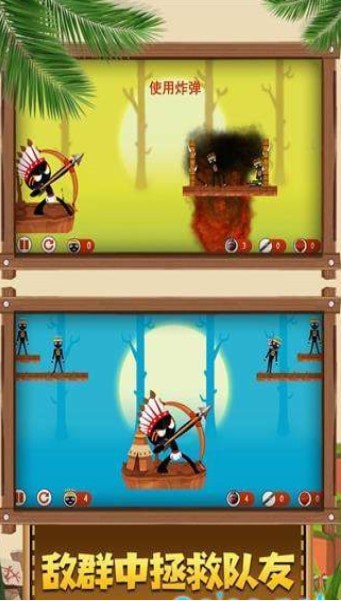 1,经典的原始人物角色造型与火柴人的背景让人眼前一亮,简单的游戏玩法令玩家喜欢它。