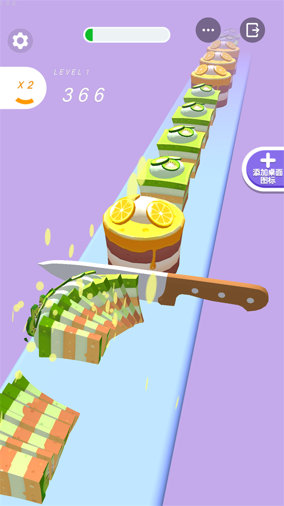 每一位玩家都可以享受畅爽的游戏体验,丰富多样的道具供你选择,你可以自由的挑战各种各样的关卡内容,蛋糕是在不断移动的非常考验你的手速,你需要快速的把所有的物品切成片状。