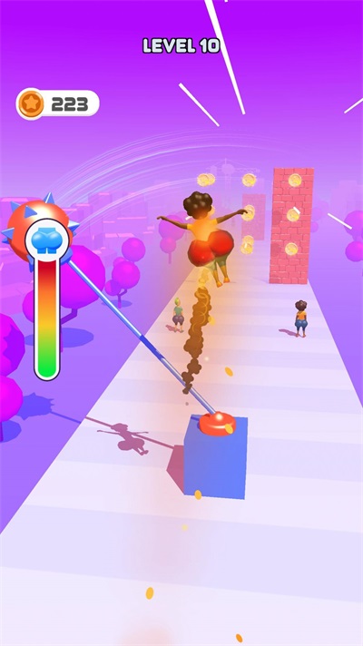 2.游戏的玩法非常新颖有趣,并且操作起来也非常的简单,玩家只要蓄力踢前方角色的屁股,让其飞行起来,到达更远的地方即可。