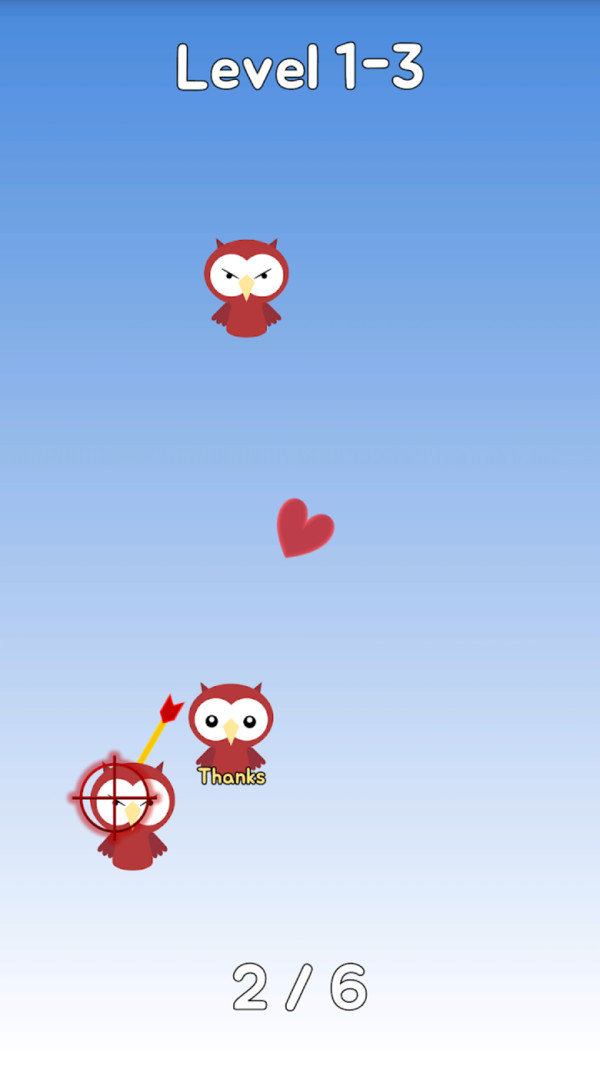 1、操作简单易玩,通过使用弓箭将小鸟射中的闯关游戏;