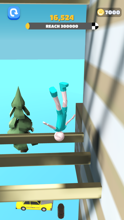 能看到角色掉落的瞬间,不仅能控制角色的着地方向,还能让角色触碰到各种的建筑物,从而能造成极大的损伤,一定要完成任务目标还要找准掉落的位置,只有完成挑战才可开启新的关卡。