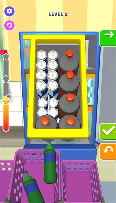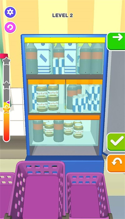 2、通过关卡整理收纳非常有趣,让你将各类饮品整齐整理,享受冰箱整理的减压乐趣!