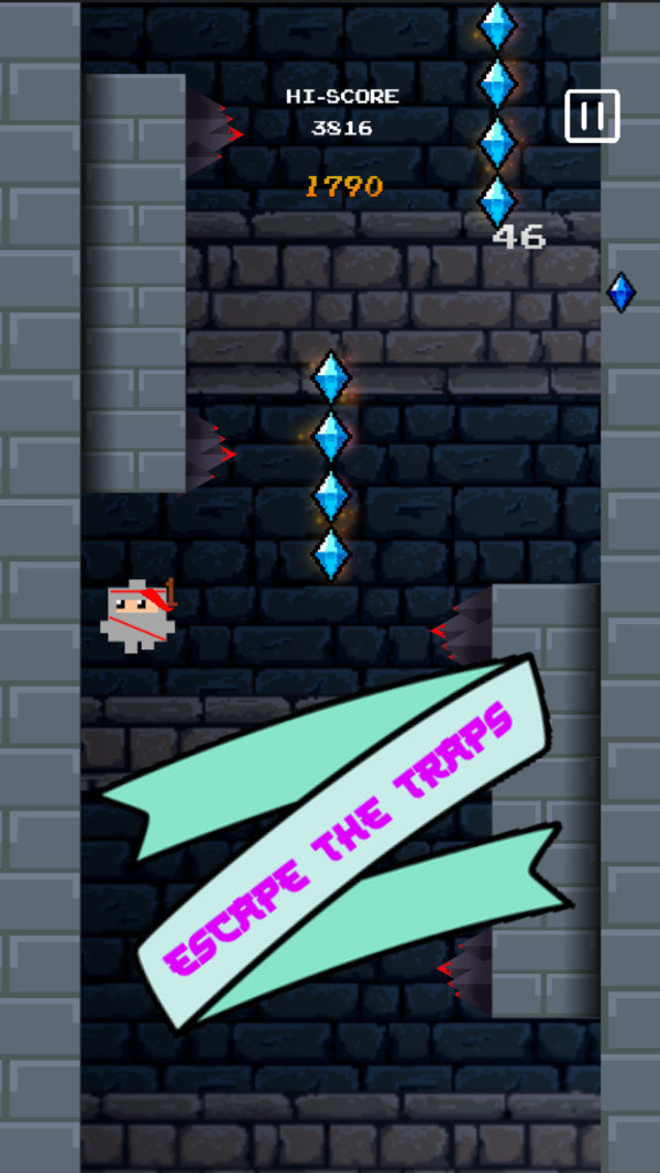忍者爬墙跳跃是一款闯关游戏,玩家在闯关的途中会遇到很多的陷阱和障碍物,这就需要考验玩家的反应能力了,反应快的话就可以躲避障碍物,还可以获得很多的钻石,这样你的分数就会很高,可以解锁更多的人物角色了。感兴趣的赶紧来下载吧。