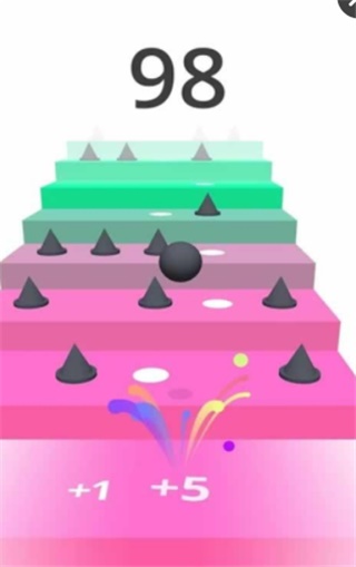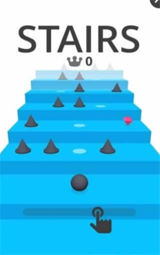 《小球爬楼梯 Stairs》是一款魔性的敏捷游戏。在游戏中玩家将要控制一个不断在楼梯上向前跳跃的小球,每一级台阶上都有许多尖刺和一个白色的区域,如果让小球碰到尖刺游戏就将失败,而连续踩到白色的区域则会获得加分并且让楼梯转变出奇妙的颜色哦!