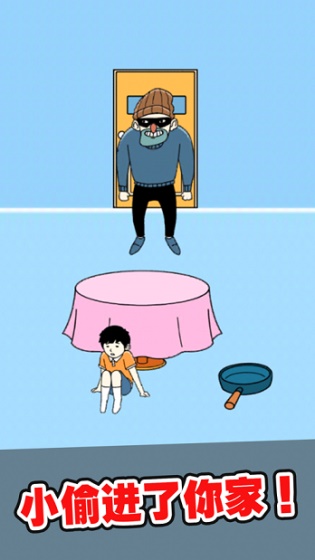 1、小偷进了你家,是不是很可怕呢,快使用物品打败小偷;