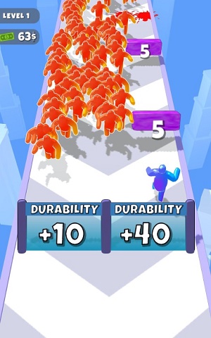砸碎射手是一款跑酷类游戏,在游戏中你所扮演的角色是蓝色一个橡胶人,在赛道上会出现很多障碍物,你可以通过左右闪躲来轻松躲避,其他的橡胶人会对你发起攻击,不要与他们耽搁太久的时间,那样会影响你的分数,设置的闯关任务是非常有趣味性的,玩家在其中也会感觉特别的精彩。