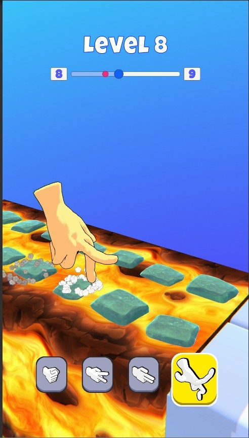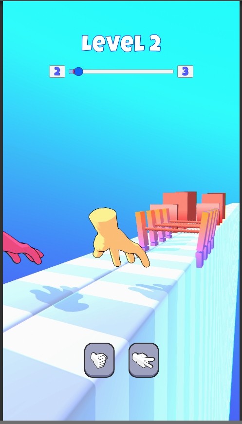 1.每一关都有较强的体验感,游戏形象只是一个简单的手掌,采用亮丽净,简洁的画面模式。